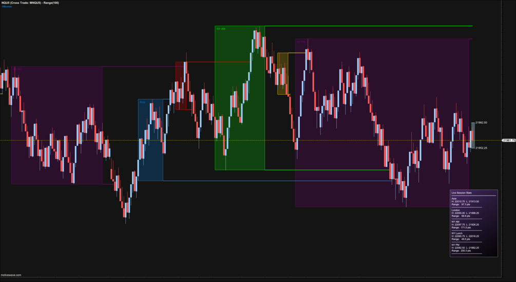⚡ Optional Live Session Stats Panel. See Live updating session high, low and range stats as they develop.